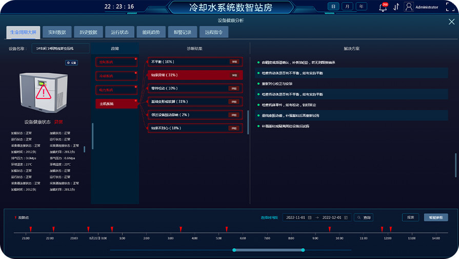 基于大数据分析设置核心运行参数合理运行值,智能算法实现参数分析精确预测参数变化,实现核心运行参数智能预警/报警功能,确保系统及设备安全