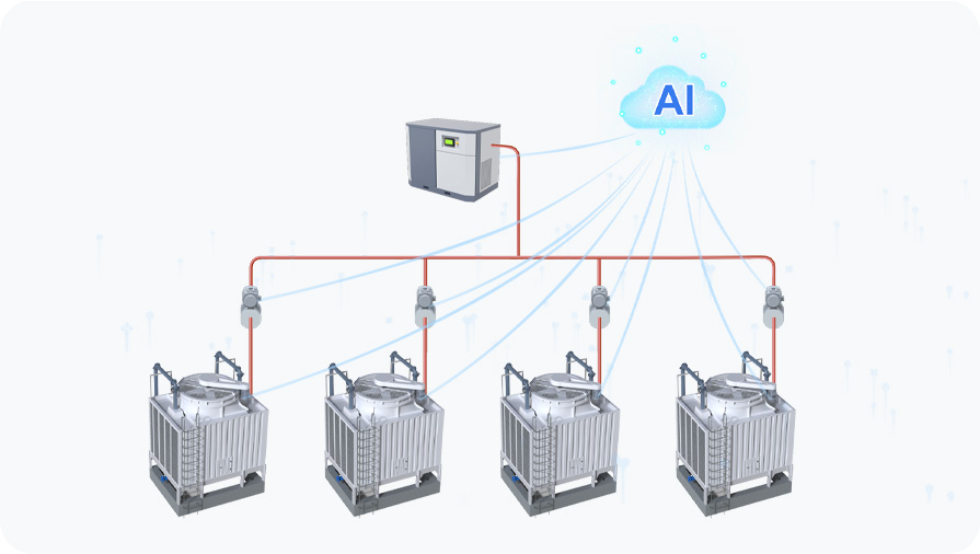 循环书泵/冷却塔风机增加变频调试装置,结合设备自身温度情况和末端工艺实际需求,动态调整循环水流量和冷却塔风量,降低循环水运行能耗30%以上